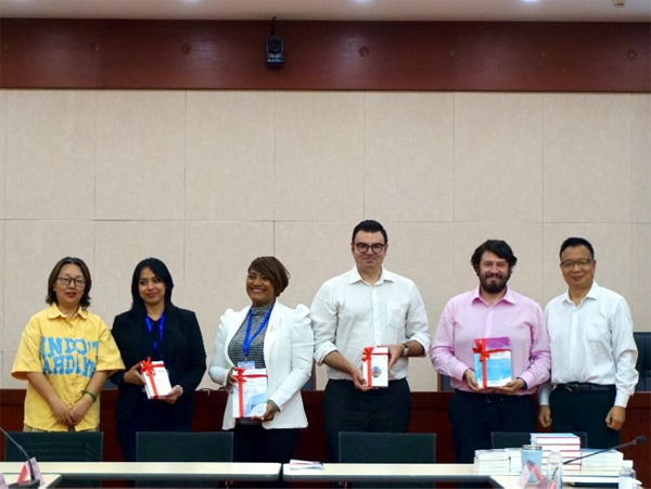 随后,李恒田副主任与李晨曦主任代表中国外文局向拉美智库发展知识分享研修班成员赠书。